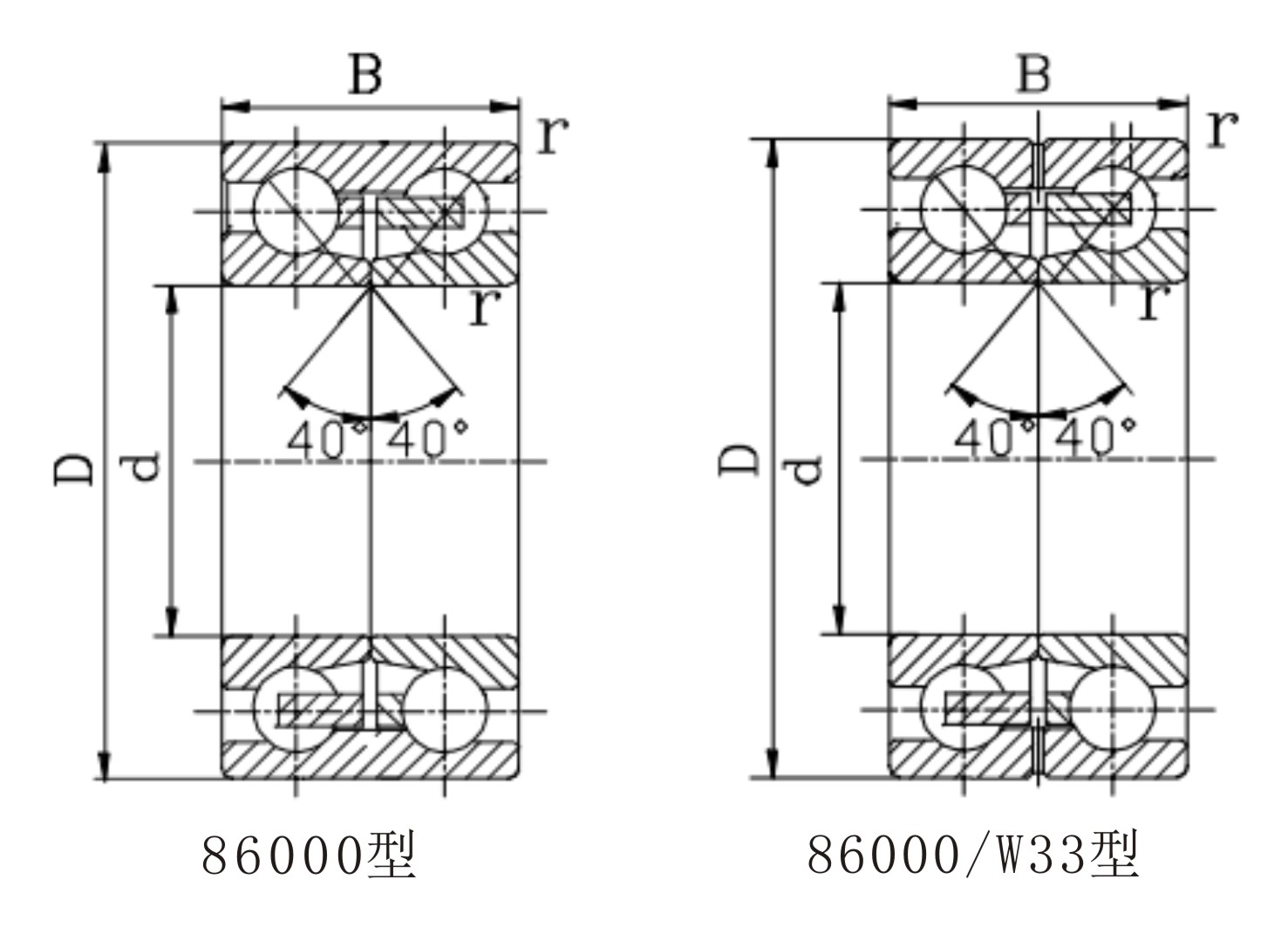 雙列角接觸球軸承與四點(diǎn)角接觸球軸承的結(jié)構(gòu)相似同樣有雙半內(nèi)圈整體外圈及雙半外圈整體內(nèi)圈的結(jié)構(gòu),但不可分離。能承受較大的徑向負(fù)荷為主的徑向和軸向聯(lián)合負(fù)荷和力矩負(fù)荷,限制軸的兩方面的軸向位移。主要用于限制軸和外殼雙向軸向位移,雖然軸承可承受雙向軸向載荷,但若一側(cè)有裝球缺口時(shí),則應(yīng)注意不要讓主要軸向載荷通過(guò)有缺口的一側(cè)溝邊。在軸承使用時(shí)應(yīng)注意使不帶裝球缺口的一側(cè)滾道承受主要載荷。
