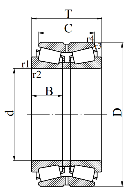雙列圓錐滾子公制軸承,按接觸角的大小劃分有:小角(9°<a≤25°)和大錐角(>25°)之分。圓錐滾子軸承的軸向承載能力取決于接觸角a,既外圈的滾道角度,接觸角a越大,軸向承載能力越大。
